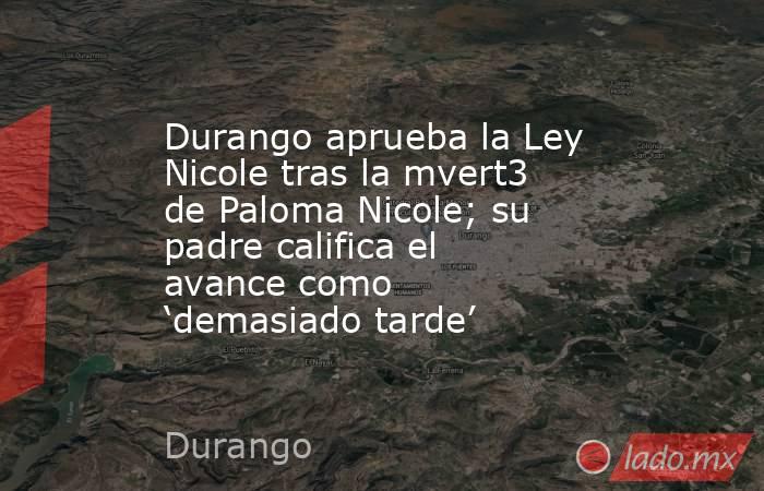 - A un mes de la muerte de Paloma Nicole, la adolescente de 14 años que perdió la vida tras someterse en secreto a una cirugía estética, el Congreso de Durango aprobó por unanimidad la llamada Ley Nicole, una reforma que prohíbe los procedimientos estéticos invasivos en menores de edad.
