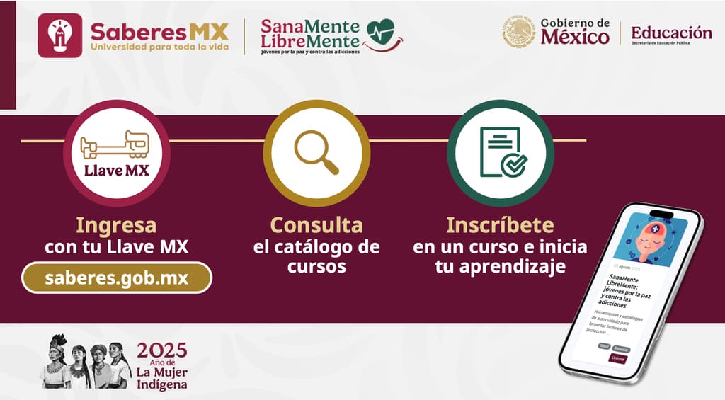 El primer curso disponible en la plataforma es SanaMente LibreMente: jóvenes por la paz y contra las adicciones, diseñado por más de 70 especialistas y dirigido a 5.5 millones de estudiantes.