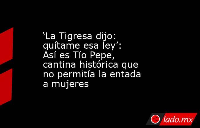 Carlos Cantú también recuerda que por décadas estuvo prohibida la entrada a las mujeres a Tío Pepe: “La Tigresa, (quien era) amante del alcohol, dijo: ‘quítame esa ley’”, en una entrevista con Checatesta. El acceso a todas las personas se permitió hasta 1982.