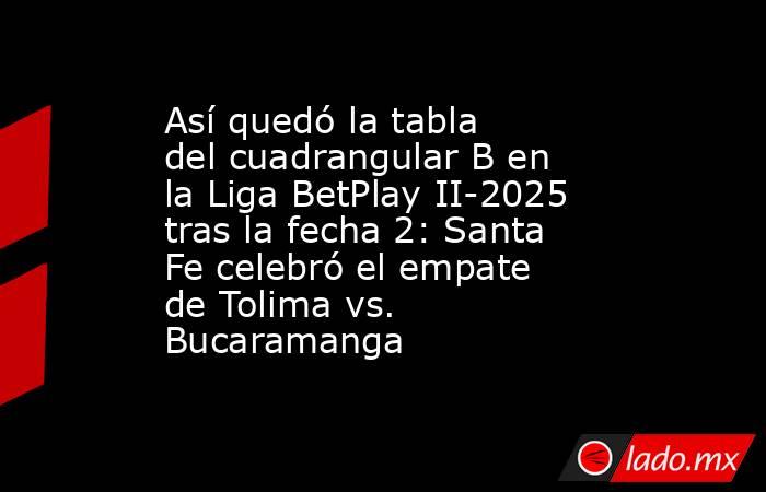 Independiente Santa Fe sumó sus tres primeros puntos en el cuadrangular B de la Liga BetPlay II-2025 derrotando 3-0 a Fortaleza Ceif, mientras que Atlético Bucaramanga y Deportes Tolima empataron sin goles en el estadio Manuel Murillo Toro de Ibagué.