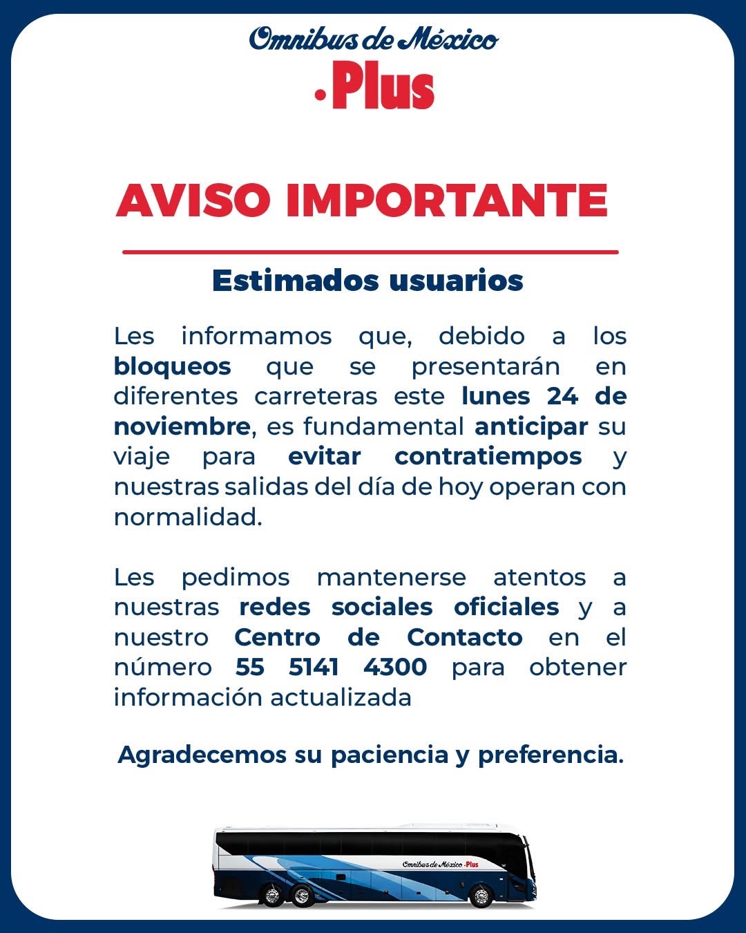 Líneas de autobús anticipan posibles demoras por bloqueos carreteros