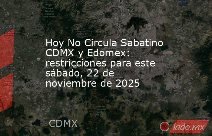 CIUDAD DE MÉXICO.- De acuerdo con la información proporcionada por la Comisión Ambiental de la Megalópolis (CAMe), este sábado, 22 de noviembre de 2025, los automóviles que no podrán desplazarse por el Hoy No Circula son: