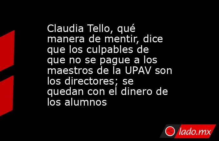 Armando Ortiz / Miente Claudia Tello, la Universidad Popular Autónoma de Veracruz no es una institución privada, es una institución pública; fue el Congreso de Veracruz quien facultó a la UPAV de autonomía, por lo tanto no requiere de RVOE’s (Reconocimiento de Validez Oficial de Estudios) para que sus carreras tengan validez oficial. Sin embargo, Claudia Tello, obligada a confundir, declara: “La UPAV Ni es privada ni es pública, es una escuela que cuando quiere aparece la parte institución y cuando quiere la asociación civil”. Miente Claudia Tello, secretaria de Educación, cuando dice que los alumnos pagan a los directores las cuotas. Los alumnos tienen que pagar a un número de cuenta en un banco, el cual les entrega un voucher de pago que respalda su cuota. Si ese pago no se refleja en la plataforma de la UPAV, los alumnos son dados de baja. El dinero va a un número de cuenta de la Fundación para la Educación, Salud y Recuperación del Medio Ambiente EDAL A.C. Pero Claudia Tello, en el afán de deslindar de responsabilidades a su pareja sentimental, Elías Calixto Armas, culpa a los directores: “Hay mucha corrupción en esa universidad y empieza desde que los alumnos deben pagar a los directores que recogen el dinero y lo depositan al banco, muchos no lo depositan a la asociación. En el documento de creación dice que los alumnos dan una aportación si pueden y si no la organización paga. Dice que tendrán asesores y se paga por hora”.