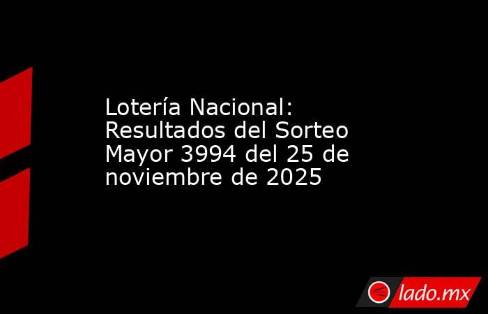 Este 25 de noviembre, la Lotería Nacional celebra el esperado Sorteo Mayor 3994, ¿estás buscando los números ganadores? Aquí encontrarás los resultados completos del Sorteo Mayor 3994 de la Lotería Nacional.