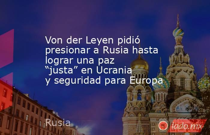 La presidenta de la Comisión Europea, Ursula von der Leyen, ha pedido este miércoles mantener la presión sobre Rusia hasta lograr una paz “justa” en Ucrania, que ofrezca también seguridad para Europa, asegurando que el bloque europeo debe estar implicado en todas las decisiones que afecten a su arquitectura de seguridad.
