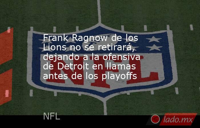 el Leones de Detroit La línea ofensiva está a punto de recibir un gran impulso. Centro cuatro veces Pro Bowl Frank Ragnow, quien se retiró durante la temporadapreparándose para retirarse y reunirse con su antiguo equipo a largo plazo. Según los medios de la NFLRagnow está en buena forma y estará listo para jugar “más pronto que tarde”.