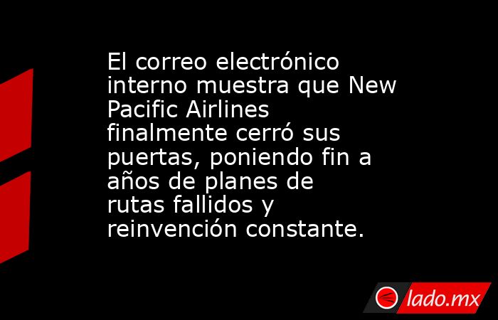 New Pacific Airlines, anteriormente conocida como Northern Pacific, parece haber cesado sus operaciones. El siguiente correo electrónico fue compartido conmigo, después de haber sido enviado internamente en la aerolínea hoy: