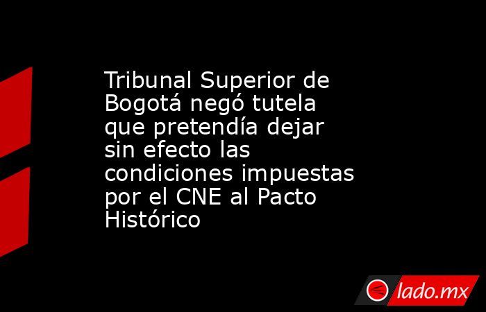 La Sala de Decisión Laboral del Tribunal Superior de Bogotá negó por improcedente la acción de tutela presentada por Iván Cepeda Castro, Carolina Corcho Mejía y Carlos Alberto Benavides, que solicitaban dejar sin efecto los condicionamientos impuestos por el Consejo Nacional Electoral (CNE) para la inscripción de la personería jurídica del Pacto Histórico.