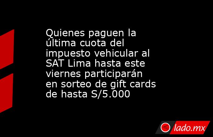 Pagar el impuesto vehicular a tiempo puede traer un beneficio adicional para los contribuyentes de la capital. El Servicio de Administración Tributaria (SAT) de Lima ha lanzado una nueva campaña de incentivos cuyo objetivo es recompensar la responsabilidad y fortalecer la cultura tributaria. Mediante ella, quienes paguen oportunamente su cuarta y última cuota del año 2025 participarán automáticamente en el sorteo de quince tarjetas de regalo con montos de hasta S/5.000.