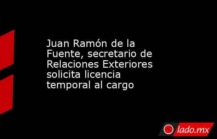 El canciller Juan Ramón de la Fuente pidió licencia a su cargo para recuperarse de una cirugía a la espalda, por lo que se quedará en su lugar, de manera temporal, Roberto Velasco Álvarez, quien fuera vocero de Marcelo Ebrard Casaubón y funge actualmente como subsecretario para América del Norte en la Secretaría de Relaciones Exteriores (SRE).