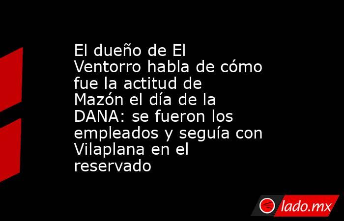 Al concluir la comida del 29 de octubre de 2024, el propietario de El Ventorro no percibió en Carlos Mazón ninguna muestra de inquietud ni apresuramiento. Así lo manifestó ante la jueza de Catarroja el pasado 21 de noviembre, en el marco de la investigación sobre la gestión de la dana que devastó la provincia y provocó la muerte de 229 personas, según ha informado Europa Press. Según su testimonio, la jornada transcurrió de modo habitual. “Fue como un día normal, un día más”, remarcó el hostelero ante la magistrada, detallando que vio al presidente de la Generalitat relajado al despedirse.