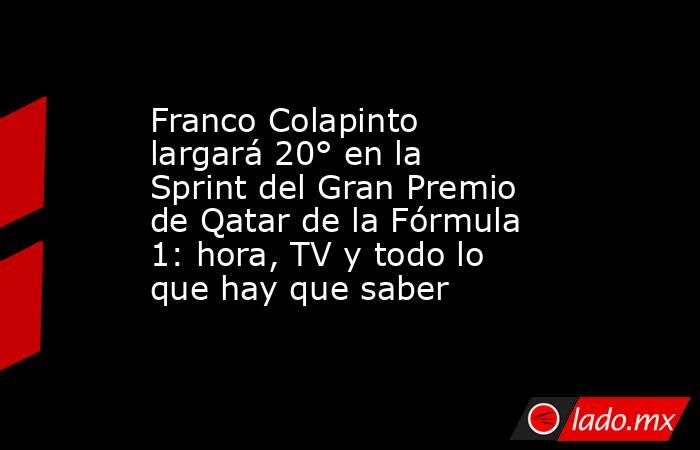 ¡Bienvenidos! Franco Colapinto volverá a tener actividad al mando de su Alpine en una de las fechas más esperadas para los fanáticos en el Gran Premio de Qatar en el circuito de Lusail, por la anteúltima fecha de la temporada