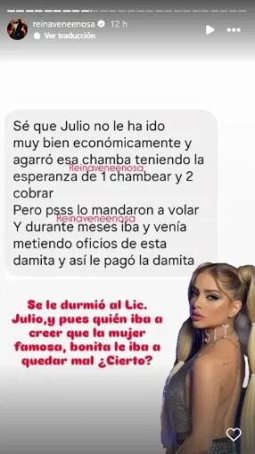 De acuerdo con información difundida el 29 de noviembre de 2025 -tema expuesto inicialmente por Reina Venenosa-, el abogado —identificado como “Julio” en algunos reportes— afirma que trabajó durante varios meses en el caso, pero nunca recibió el pago por sus servicios.