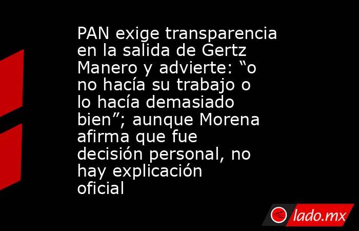 Para el PAN, esta falta de detalle obliga a plantear preguntas básicas sobre el desempeño de Gertz Manero durante su gestión.