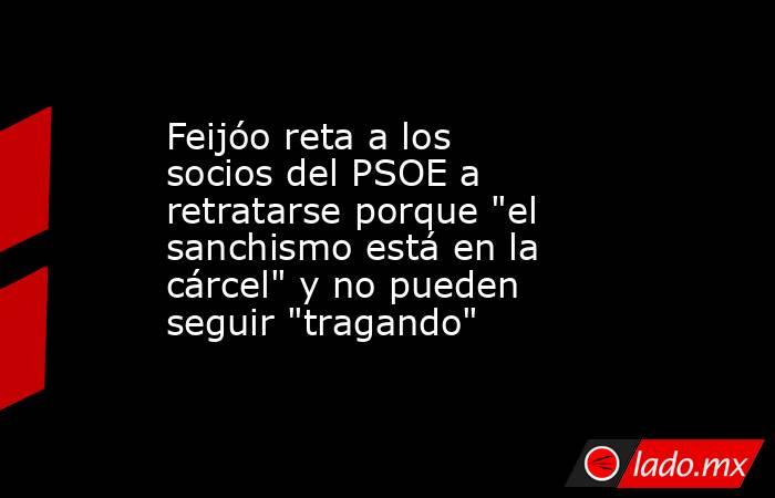 El líder del PP, Alberto Núñez Feijóo, ha asegurado este domingo que los españoles están "hartos" de la "corrupción" del jefe del Ejecutivo, Pedro Sánchez, y ha retado a los socios del PSOE a no seguir "tragando" y "retratarse" porque "esto va de vergüenza o dignidad". Además, ha destacado que José Luis Ábalos, Santos Cerdán y Koldo García, que acompañaron al presidente en las primarias del PSOE, "ya conocen la cárcel" y ahora "falta el uno".