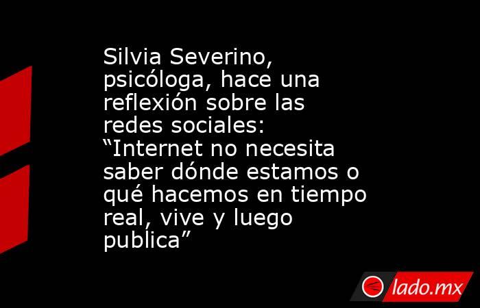 “Internet no necesita saber dónde estamos o qué hacemos en tiempo real, vive y luego publica”, explica la especialista. A partir de esta idea, Severino pone el foco en la importancia de establecer límites entre la vida privada y la exposición digital.
