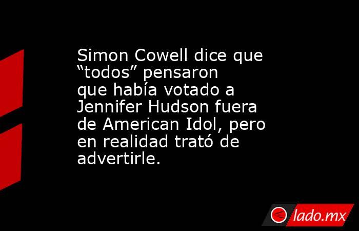 Simon Cowell dice que “todos” pensaron que había votado a Jennifer Hudson fuera de American Idol, pero en realidad trató de advertirle. Mas Cipolleti