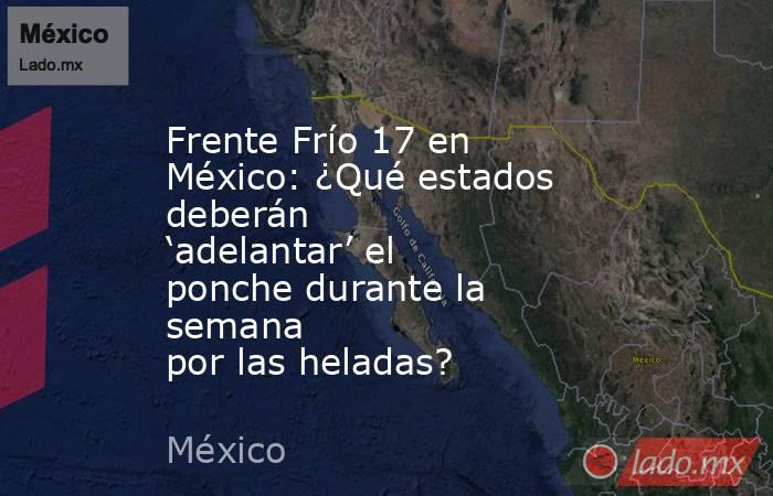 El Frente Frío 17 vendrá acompañado de una masa de aire polar que mantendrá un ambiente frío a gélido durante la mañana y la noche en zonas montañosas de la Mesa del Norte y la Mesa Central. Además, se prevén heladas al amanecer en por lo menos 10 entidades del país.