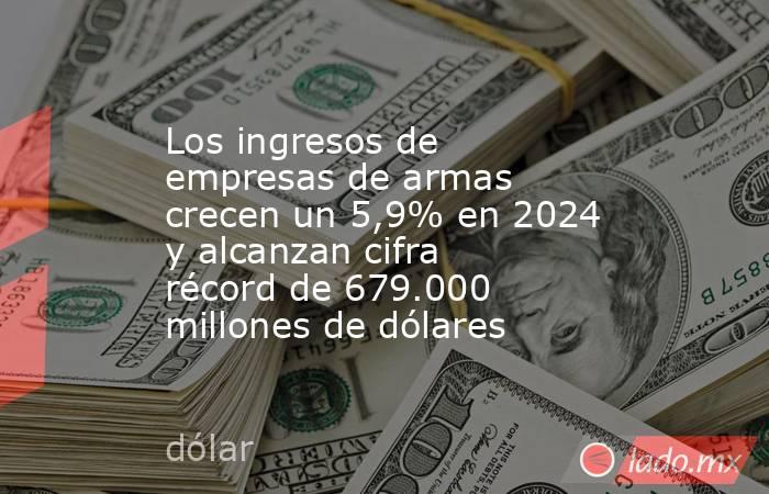 Los ingresos por la venta de armas y servicios militares de las cien mayores empresas productoras aumentaron un 5,9% en 2024, y alcanzaron la cifra récord de 679.000 millones de dólares, según una investigación del Instituto Internacional de Investigación para la Paz de Estocolmo (SIPRI) publicada este lunes, que señala a las guerras de Ucrania y Gaza, un gasto militar cada vez mayor y a las tensiones geopolíticas como causas del aumento.