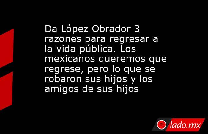 La verdad es que millones de mexicanos no quieren que regrese López Obrador, lo que quieren es que sus hijos y los amigos de sus hijos regresen todo lo que se robaron. Vale mencionar que hace unos meses se detectó que Amílcar Olán, uno de los prestanombres de Andy López Beltrán, realizó una transferencia de tres mil millones de pesos a una cuenta de Suiza mediante un facturero de Tabasco. Por supuesto, no van a regresar nada de lo robado, pero si no regresan lo robado, que tampoco regrese López Obrador.