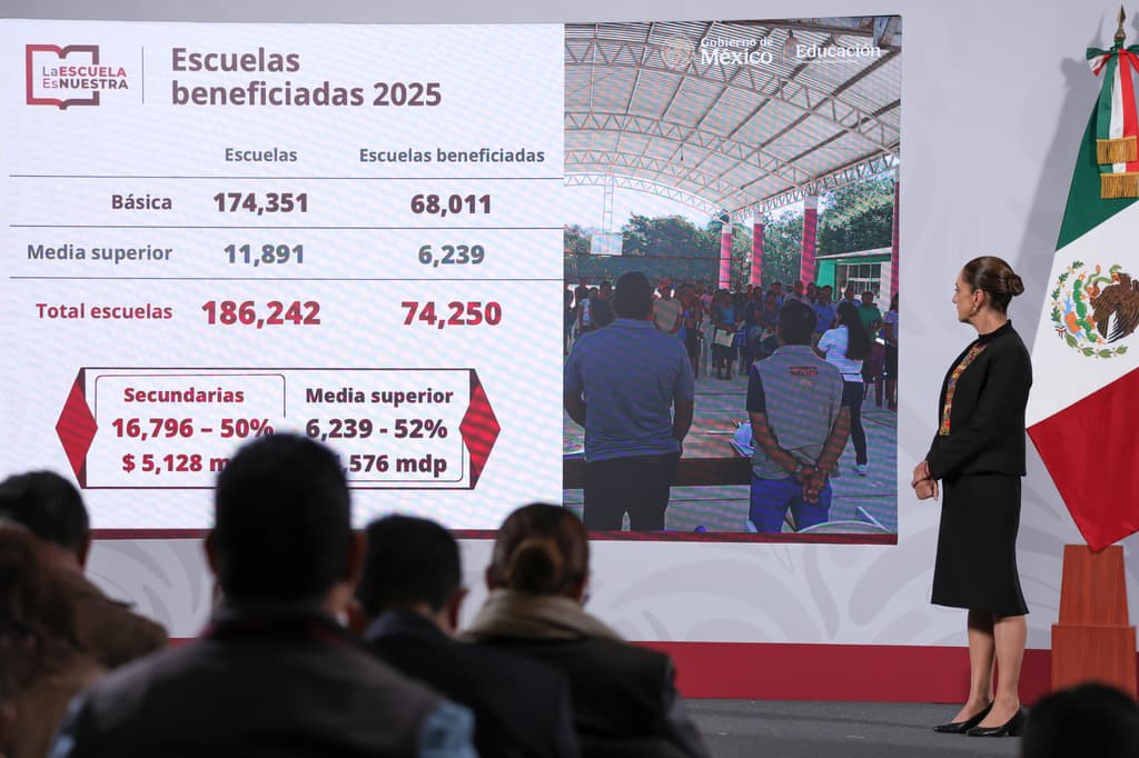 Por su parte, la directora general del programa La Escuela es Nuestra, Pamela López Ruiz, informó que este año se beneficiaron a 8.1 millones de estudiantes, lo que equivale a una inversión de 25 mil millones de pesos (mdp).
