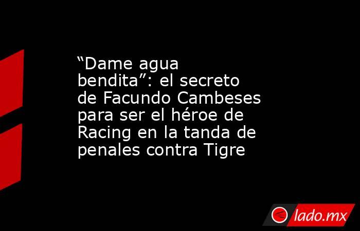 El pedido que realizó Facundo Cambeses en la definición por penales del pase de Racing Club a las semifinales del Torneo Clausura frente a Tigre se convirtió rápidamente en uno de los momentos más comentados de la jornada. El arquero, figura excluyente de la noche en el estadio de Racing, solicitó un agua a un colabordor que se encontraba detrás del arco justo antes de atajar el disparo a Joaquín Laso. La escena, viralizada en redes sociales, llamó la atención al solicitar la bebida como “dame agua bendita”.