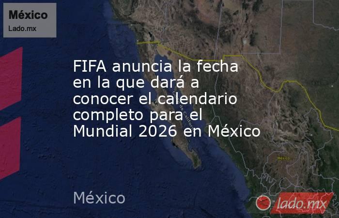 La FIFA revelará el calendario completo de partidos del mundial 2026 en una transmisión global en vivo el sábado 6 de diciembre a las 11:00 horas (tiempo del centro de México) desde Washington D.C, donde se revelarán fechas, horarios y sedes de cada uno de los 104 encuentros.