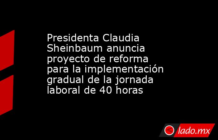 La Presidenta de México, Claudia Sheinbaum Pardo, anunció que, luego de un consenso con los sectores empresarial, sindical, académico, gubernamental y con la sociedad civil, enviará al Senado de la República el proyecto de reforma para que, a partir del 2026, se implemente de forma gradual la jornada laboral de 40 horas, reduciendo dos horas por año hasta concretar en el 2030, con lo que se beneficiará a 13.4 millones de personas trabajadoras.