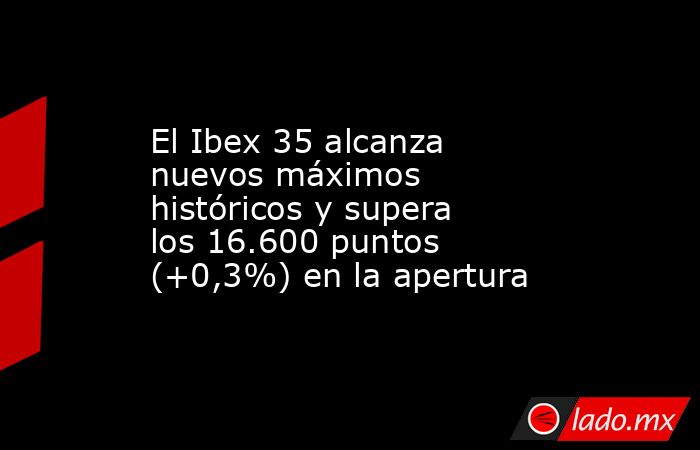 El Ibex 35 ha abierto este jueves con un avance del 0,34%, lo que le ha permitido conquistar la cota psicológica de los 16.600 puntos y marcar nuevos máximos históricos, al situarse en los 16.641,6 enteros hacia las 9.00 horas.