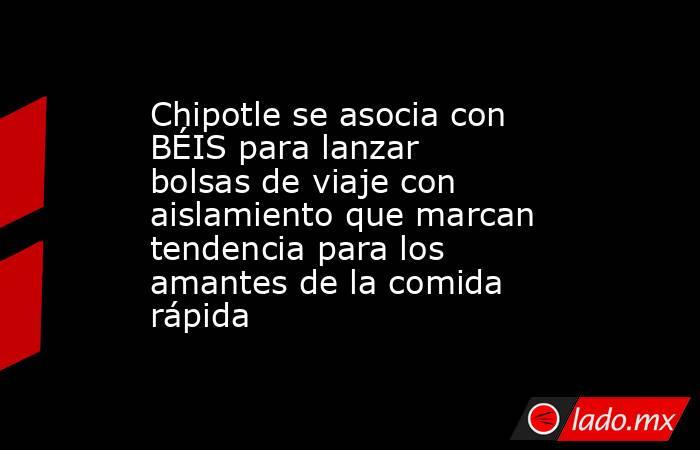 Chipotle Mexican Grill y BÉIS anunciaron hoy “The To Go Collection”, una nueva colección cápsula de 11 piezas diseñada para hacer que transportar Chipotle a cualquier destino sea fácil y elegante. Creada en colaboración con BÉIS, la omnipresente marca de viajes dirigida por el súper fanático de Chipotle, fundador y director creativo Shay Mitchell, la colección combina utilidad y estilo: construcción aislada para mantener la comida caliente, prácticos bolsillos para servilletas y extras, y formas modernas diseñadas para carreras al aeropuerto y regresos a casa de vacaciones.