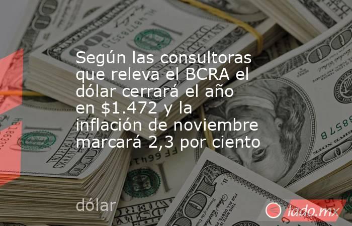 Las expectativas de inflación y tipo de cambio en Argentina registraron modificaciones en el último relevamiento mensual del Relevamiento de Expectativas de Mercado (REM) del Banco Central. De acuerdo con el informe publicado hoy, los analistas consultados estimaron una inflación mensual de 2,3% para noviembre y proyectaron un tipo de cambio nominal de $1.472,9 por dólar para diciembre de 2025, cifras que implican un recorte de las previsiones de suba del dólar y un aumento de las expectativas de inflación respecto al relevamiento anterior.