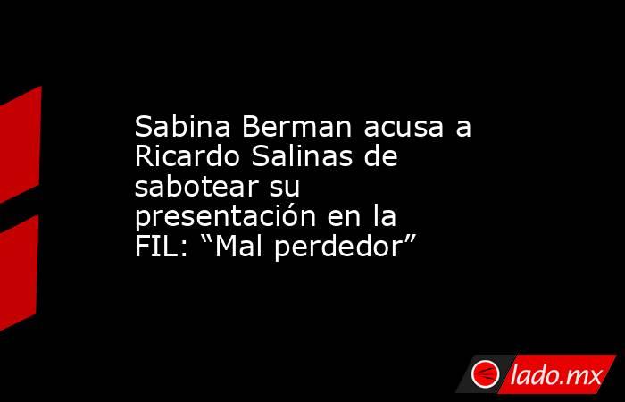 La escritora Sabina Berman acusó de “mal perdedor” al empresario Ricardo Salinas Pliego por supuestamente intentar “reventar” la presentación de su libro ‘Los billonarios desaparecen’ en la Feria Internacional del Libro (FIL) de Guadalajara.