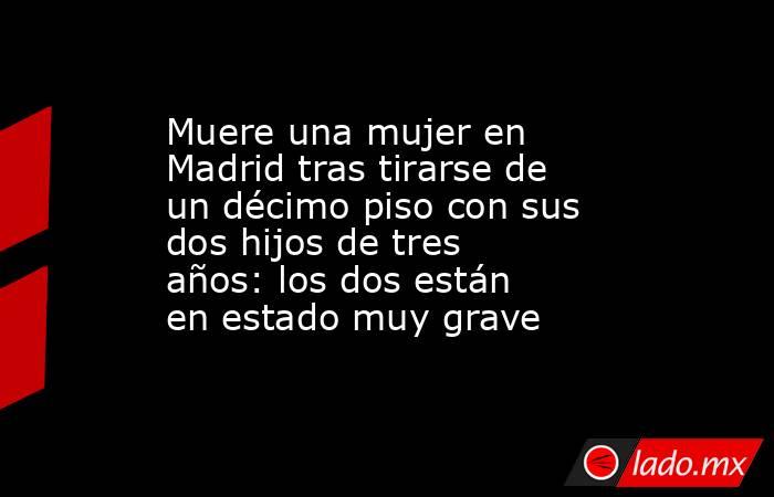 Una mujer de 48 años ha fallecido este sábado tras precipitarse desde el décimo piso de un edificio situado en la calle Ricardo Ortiz, en el distrito de Ciudad Lineal de Madrid, junto a sus dos hijos de tres años, quienes han resultado heridos de extrema gravedad. Según han confirmado fuentes policiales a Europa Press y a EFE, los menores han sido trasladados a distintos hospitales de la capital, donde permanecen ingresados con pronóstico muy grave.