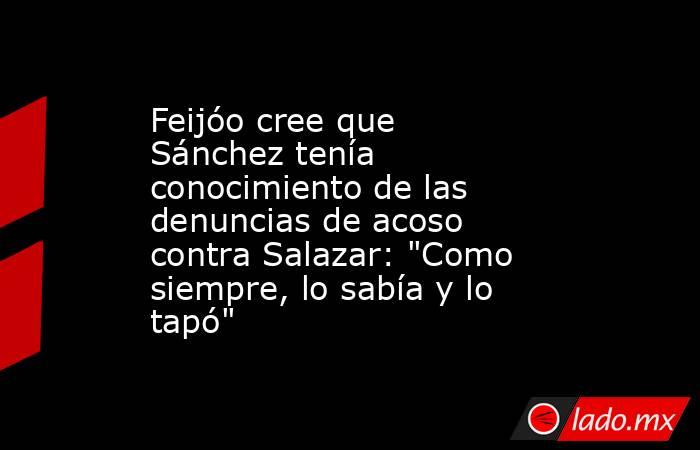 El líder del PP, Alberto Núñez Feijóo, considera que el presidente del Gobierno tenía conocimiento de las denuncias de acoso sexual contra el exdirigente socialista y exasesor en Moncloa Francisco Salazar porque era un "hombre de su absoluta confianza" y uno de los "muñidores" de las primarias del PSOE. A su entender, Pedro Sánchez "como siempre, lo sabía y lo tapó".