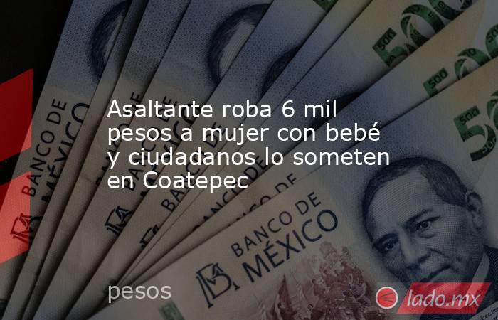 - Un presunto asaltante fue detenido por ciudadanos en Coatepec la tarde de este viernes, luego de robar 6 mil pesos a una mujer que llevaba a su bebé en brazos dentro de la tienda Elektra.