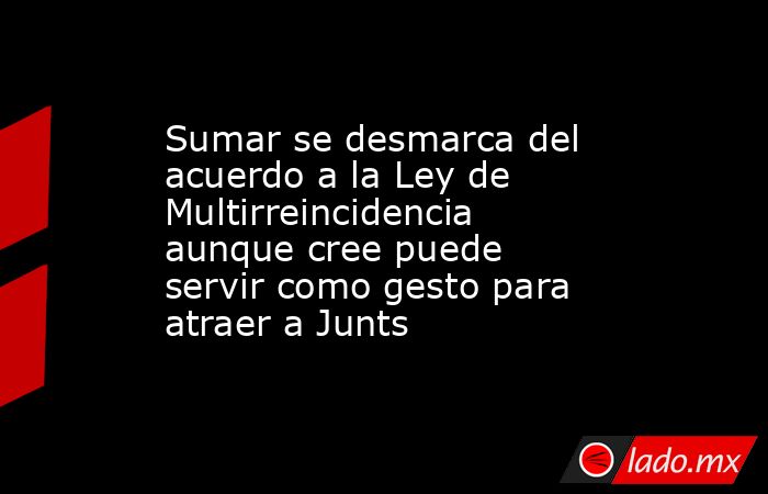 Sumar se desmarca de la reforma penal para aumentar el castigo a la multirreincidencia y de la media docena de cambios pactados entre PSOE, Junts y PP a la ley que se tramita en el Congreso, si bien asume que puede servir como gesto que contribuya a que los postconvergentes desistan de su actitud de bloqueo al Ejecutivo.