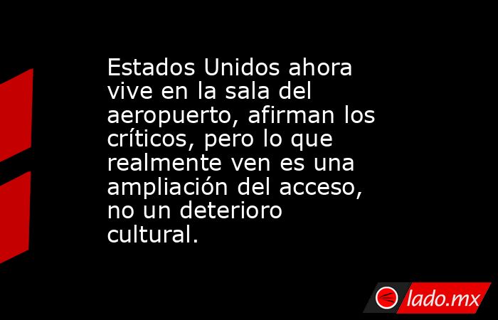 Existe la creencia entre cierto grupo de élites de que Estados Unidos ha adoptado la estética, los valores y la lógica social de la sala VIP del aeropuerto como su estilo cultural dominante. Todo, desde restaurantes, hogares y espacios públicos hasta la estructura de la vida económica, ha adquirido una uniformidad agradable, ligera y sin fricciones en la sala VIP del aeropuerto.