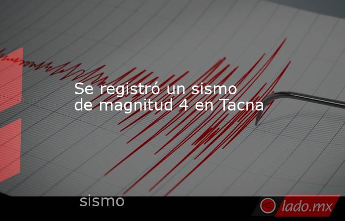 Un sismo de magnitud 4 ocurrió este domingo 7 de diciembre en la ciudad de Tacna, en la provincia de Tacna, del departamento de Tacna, de acuerdo con la más reciente información del Centro Sismológico Nacional (Censis) del Instituto Geofísico del Perú (IGP).