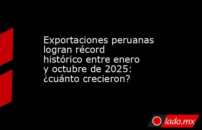 Entre enero y octubre de 2025, las exportaciones peruanas alcanzaron los US$71.882 millones, lo que representa un crecimiento de 20% respecto al mismo periodo de 2024, según reportó el Centro de Investigación de Economía y Negocios Globales de la Asociación de Exportadores (CIEN-ADEX).