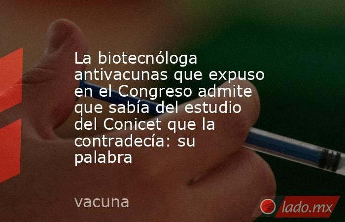 La polémica exposición antivacunas encabezada semanas atrás por la diputada del PRO, Marilú Quiróz, en el Congreso de la Nación, sigue dando que hablar. A diez días de la cuestionada intervención, la biotecnóloga Lorena Diblasi -que participó con un discurso sobre el supuesto “magnetismo” que generaban las dosis contra el Coronavirus en la gente- se contactó con Infobae para referirse al estudio del Conicet publicado por este medio que contradecía sus dichos y que ella misma había tenido en sus manos.