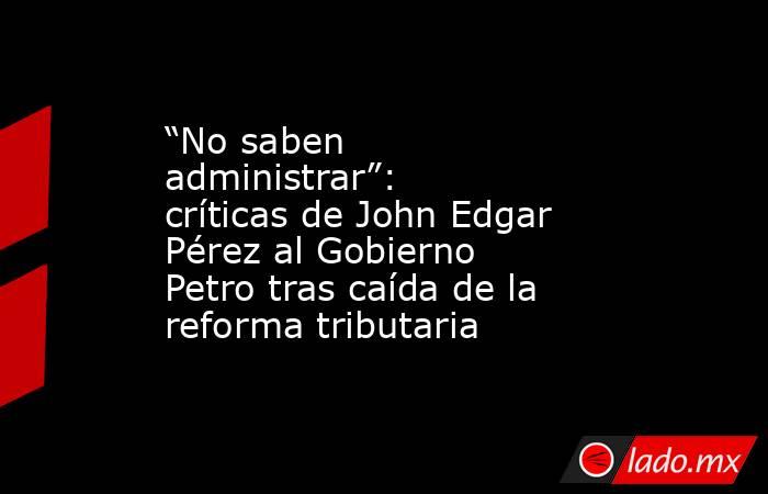 El representante a la Cámara John Edgar Pérez, integrante de Cambio Radical, manifestó su posición luego de que la reforma tributaria impulsada por el Gobierno Nacional no continuara su trámite legislativo.
