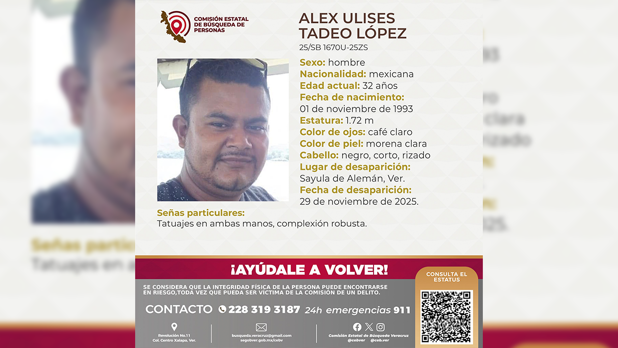 Doce días después de haber sido privado de la libertad, fue localizado sin vida Alex Ulises Tadeo López, conductor del taxi 68 de Sayula de Alemán, cuyo cuerpo apareció la mañana de este miércoles en un camino de terracería de la comunidad de Loma Bonita, también conocida como La Arena, en el municipio de San Juan Evangelista.