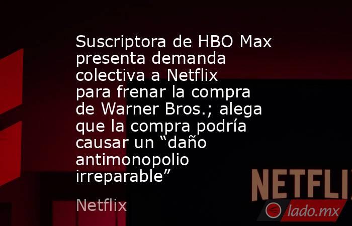 Según el meido de noticias, Los Angeles Times, la demanda fue presentada por Michelle Fendelander, una suscriptora de HBO Max que reside en Las Vegas y que nunca ha sido usuaria de Netflix. El documento legal fue interpuesto ante un Tribunal de Distrito de Estados Unidos en San Jose, California.