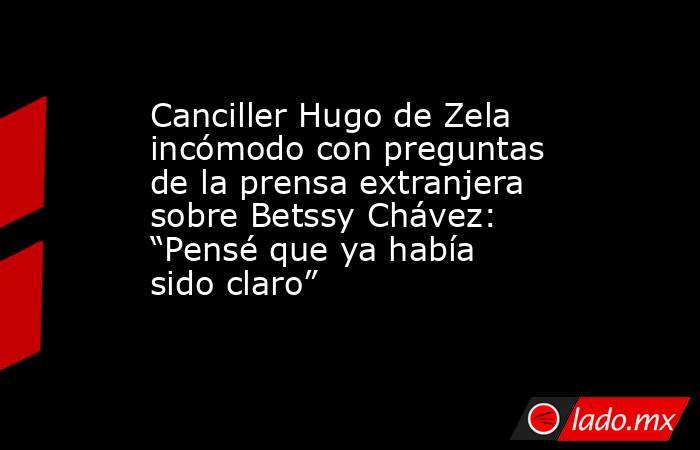 Durante una reciente conferencia ante la prensa extranjera, el canciller Hugo de Zela expresó su incomodidad al reiterar que el Gobierno descarta la posibilidad de un ingreso por la fuerza a la embajada de México para cumplir la orden de captura de Betssy Chávez, expremier sentenciada a 11 años de prisión tras el intento de autogolpe de Estado de diciembre de 2022.