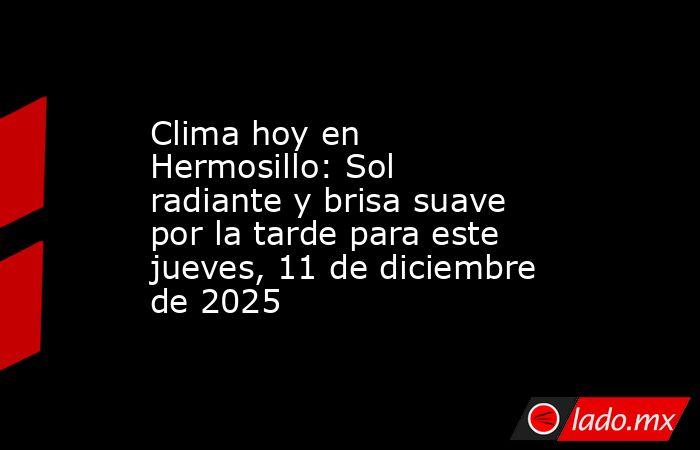 HERMOSILLO, Sonora.- El cielo se despereza lento sobre Hermosillo, donde la luz del sol comenzará a asomarse con fuerza a medida que avanza la mañana. Con temperaturas que alcanzarán los 31 grados, el ambiente se sentirá cálido y, en ocasiones, pesado debido a la humedad que roza el 58%. A lo largo del día, el viento soplará suavemente desde el oeste-noroeste, a unos 7 km/h, lo que aportará un ligero alivio a la calidez del día.