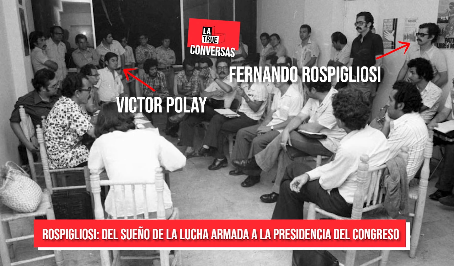 El actual presidente del Congreso, Fernando Rospigliosi (Fuerza Popular), y el cabecilla terrorista del Movimiento Revolucionario Túpac Amaru (MRTA), Víctor Polay Campos —condenado a prisión— coincidieron en una reunión en el siglo pasado, según una imagen difundida en el pódcast La True.