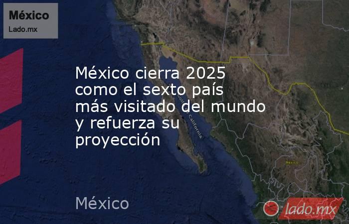 México concluye 2025 como el sexto país más visitado del mundo, según datos de ONU Turismo. La nación también se posicionó en el segundo lugar global por llegada de turistas, únicamente detrás de Estados Unidos. Esta cifra ratifica su papel como referente turístico en América y cierra un año con participación destacada en las principales ferias del sector a nivel internacional. Una de las metas del gobierno mexicano es pasar al quinto lugar en 2026, aprovechando el auge del Mundial 2026, reveló Claudia Sheinbaum el 11 de diciembre de 2025.
