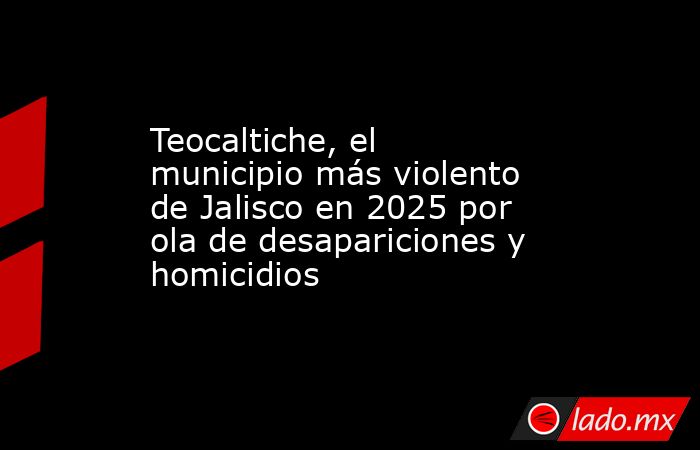 Teocaltiche se convirtió en 2025 en el municipio más violento de Jalisco, principalmente por el alarmante número de personas desaparecidas y el repunte de homicidios dolosos, de acuerdo con registros […]La entrada Teocaltiche, el municipio más violento de Jalisco en 2025 por ola de desapariciones y homicidios se publicó primero en Dominio Público.