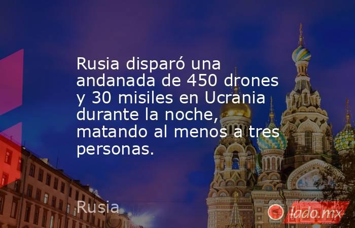 El presidente ucraniano, Volodymyr Zelenskyy, dijo que Rusia lanzó más de 450 aviones de ataque y 30 misiles durante la noche hasta el sábado, apuntando a varias regiones de Ucrania, matando al menos a tres personas e hiriendo a 10.