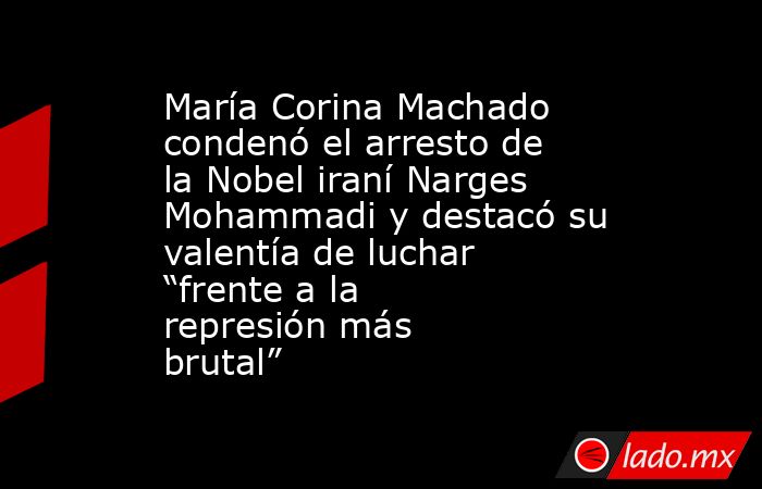 La líder opositora venezolana María Corina Machado expresó su rechazo a la reciente detención de Narges Mohammadi, activista iraní y Premio Nobel de la Paz 2023, por parte del régimen de Irán.